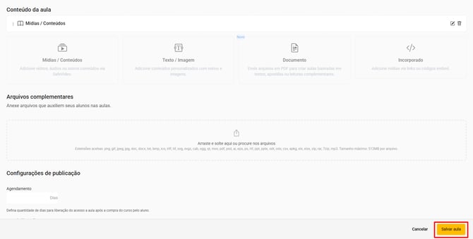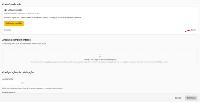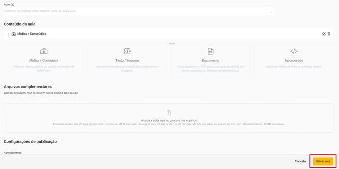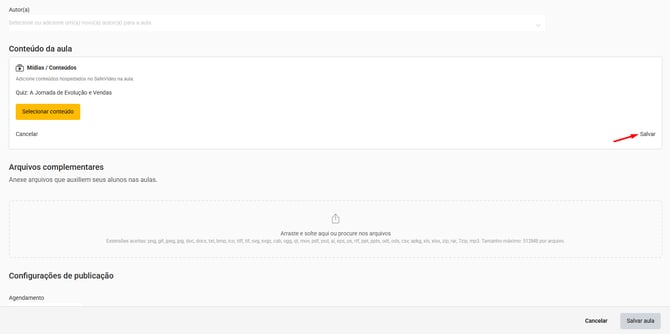 8. Clique no botão “Salvar aula” para salvar as alterações na aula.