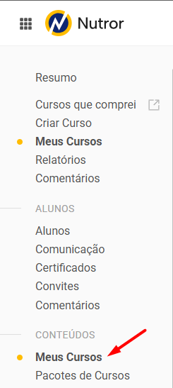 1. Acesse sua conta no Nutror e, em seguida, clique em "Meus Cursos":
