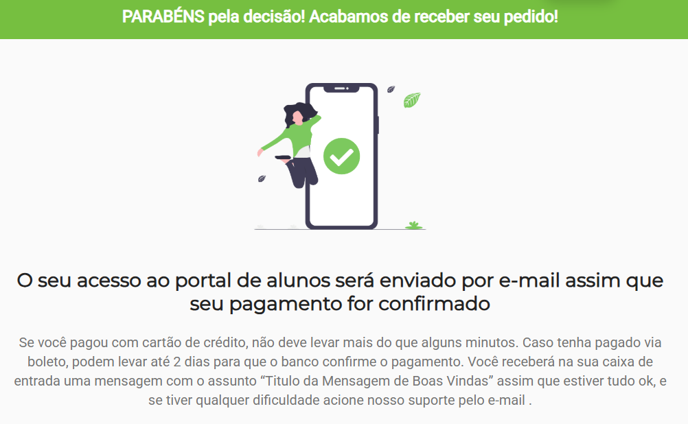 Ah, e um detalhe importante: o Checkout Elements já vem com uma página de obrigado própria, mas se você preferir usar a sua, é só cadastrar no MyEduzz.