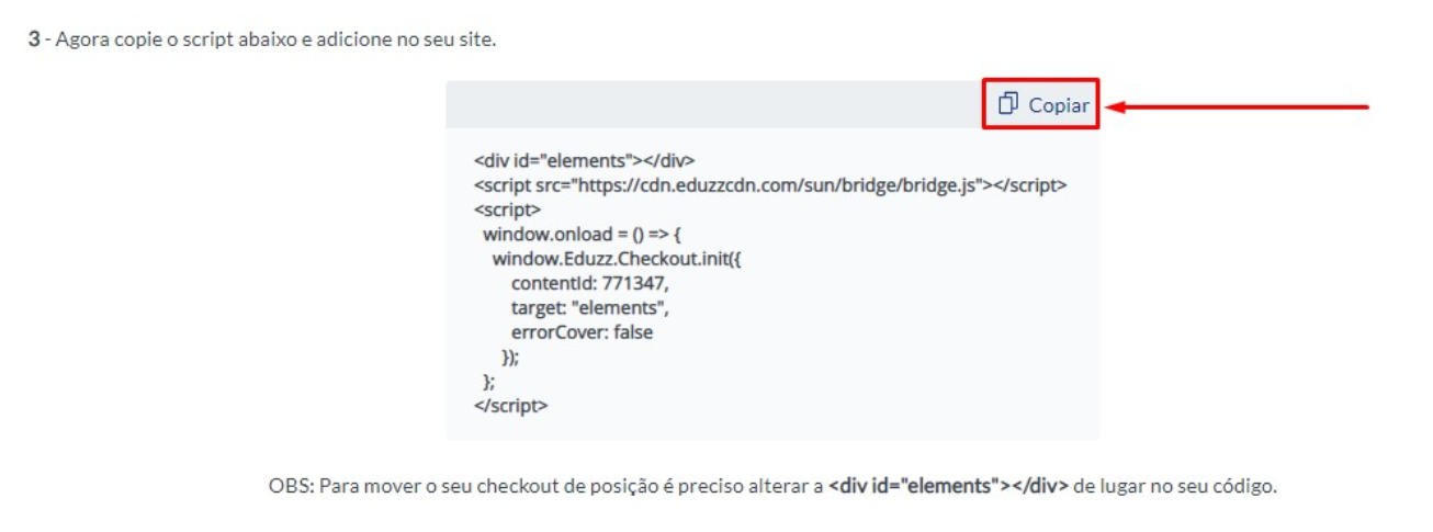 Copie e cole o scrip, manualmente, no código HTML da sua página, no local onde deseja que o checkout apareça: