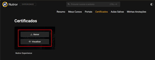 - Acesse sua conta no Nutror e clique em "Certificados".