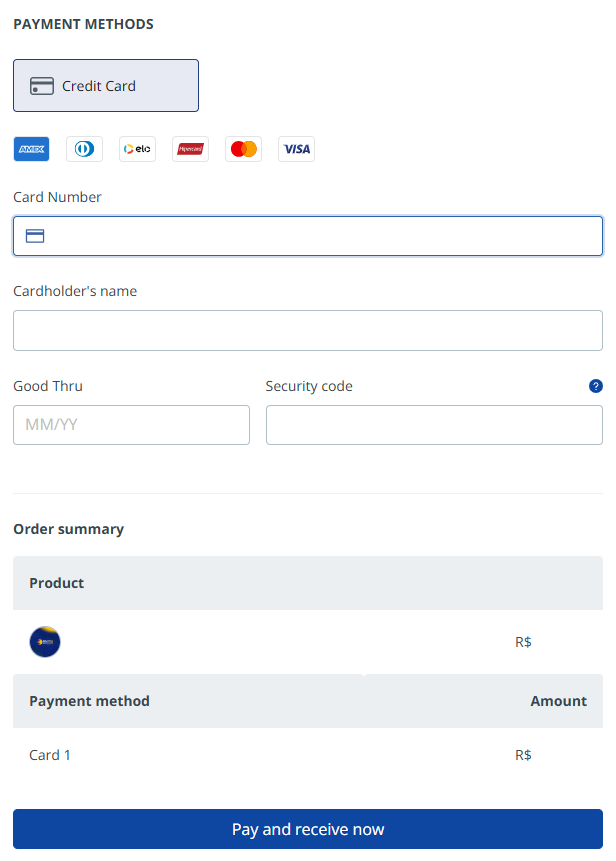 - Use this data for future purchases: caso queira usar os mesmos dados para compras futuras, deixe essa opção selecionada, do contrário, desmarque-a;