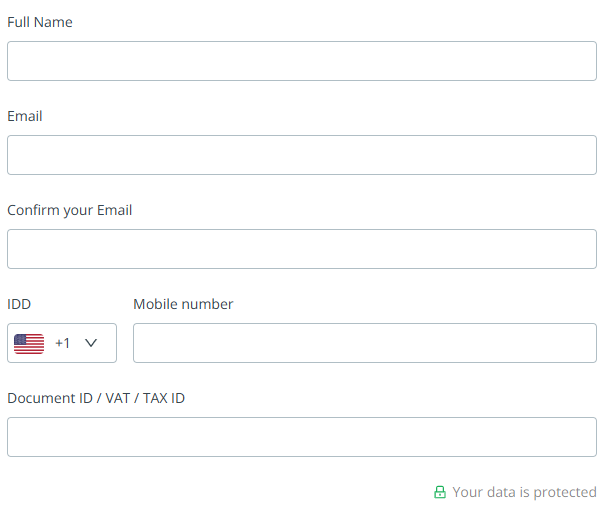 - Identification document / VAT / TAX ID: enter the identification document corresponding to your selected country;