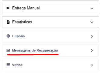 No menu lateral, desça a tela e acesse a aba "Mensagens de Recuperação":