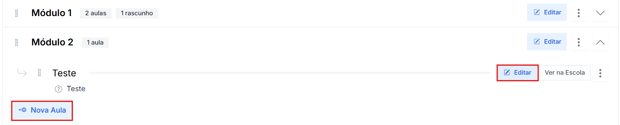 Crie uma nova aula ou clique em "editar" em uma já criada: