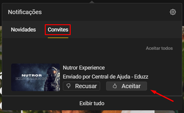 Clique na aba Convites e, em seguida, basta clicar em Aceitar o convite para ter acesso aos conteúdos: