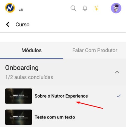 Com o app Nutror já aberto, toque no curso que deseja comentar:
