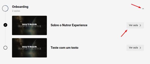 Na aba "Módulos" toque na aula que deseja deixar um comentário e em seguida, em "Comentários":