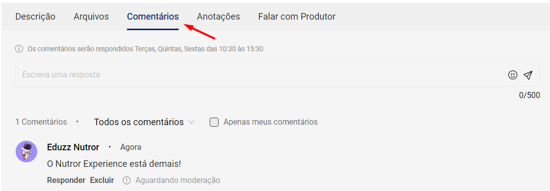 Observação: o produtor do conteúdo receberá seu comentário que poderá ser aprovado como público ou privado. Se aprovado como público todos os alunos do curso irão ver o seu comentário e a resposta do produtor do conteúdo, se aprovado como privado somente você e o produtor do conteúdo irão ver o comentário e respostas.