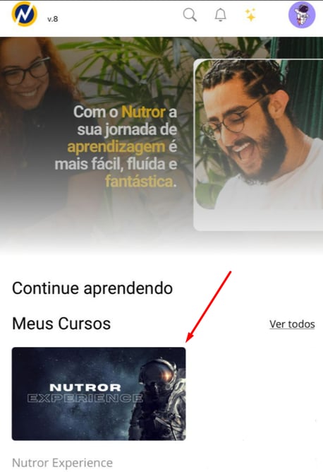 Com o app Nutror já aberto, acesse o curso que deseja: