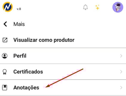 Para acessar todas as suas anotações já feitas, encontra a aba "Minhas Anotações" e confira todas as anotações feitas em todos os cursos.