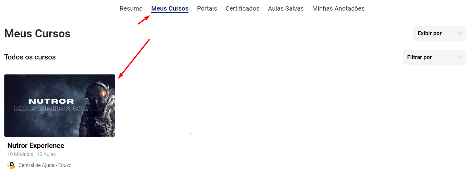 Faça login em sua conta Nutror, e escolha o curso que deseja adicionar suas anotações: