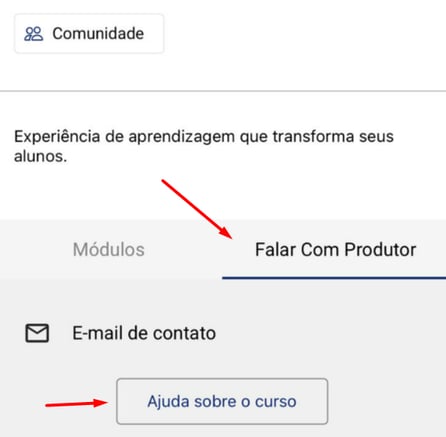 Com o app Nutror aberto, localize o curso desejado e através da aba "Falar com Produtor",
