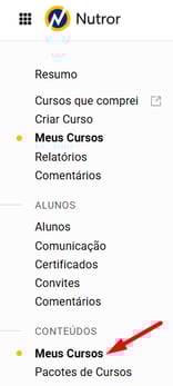 - Acesse sua conta no Nutror e, em seguida, clique em "Meus Cursos":
