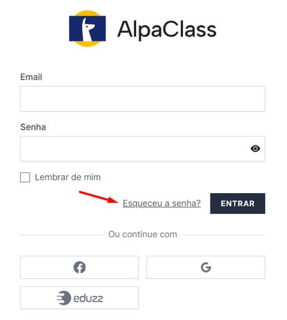 Caso não se lembre da sua senha, basta clicar em "Esqueci minha senha" na tela de login da AlpaClass: