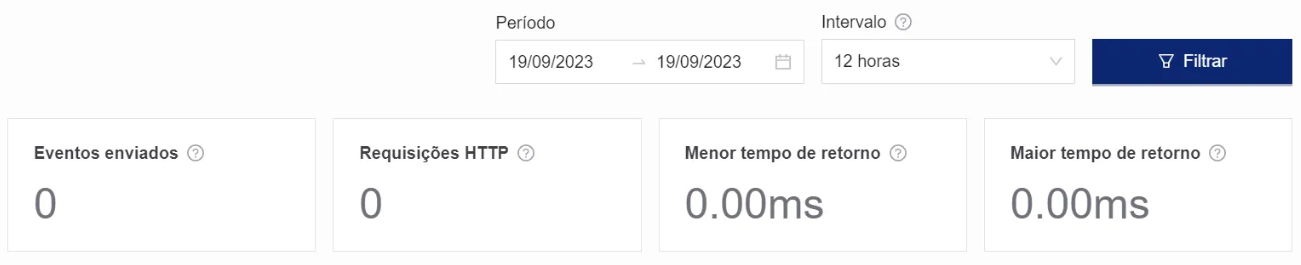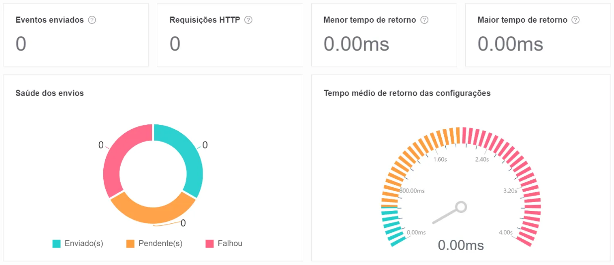 - Saúde dos envios: Quantidade de eventos que foram enviados, que estão pendentes e que falharam;