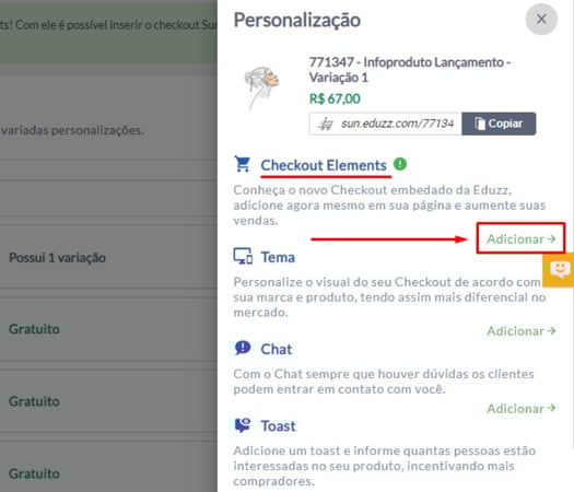 - No menu lateral, clique em “Checkout Elements” e depois em “Adicionar”: