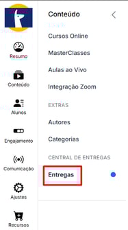- Em sua conta AlpaClass, acesse a aba "Conteúdo", clique em "Entregas":