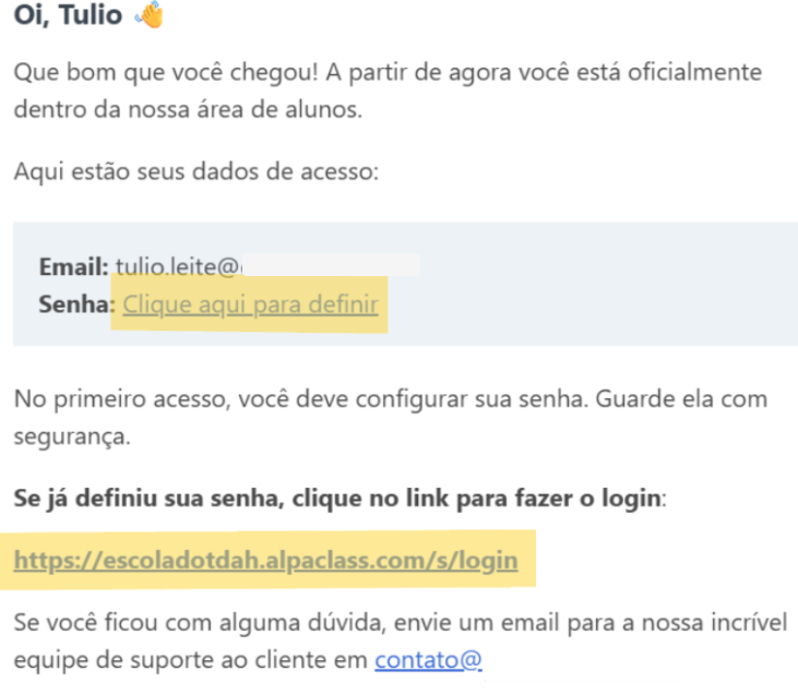 1. Abra o e-mail de boas-vindas enviado pela AlpaClass (verifique também sua caixa de spam ou promoções).