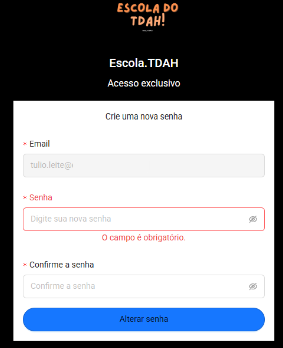 3. Você será redirecionado para o campo de alteração de senha. Preencha os dois campos com a nova senha e clique em "Alterar Senha":