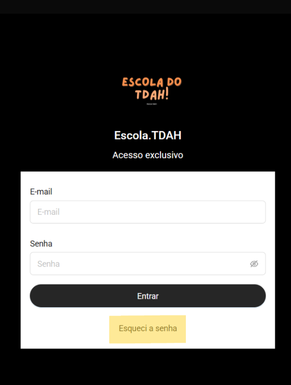 1. Clique em Esqueci a senha e digite o seu e-mail de acesso a sua conta na Escola: