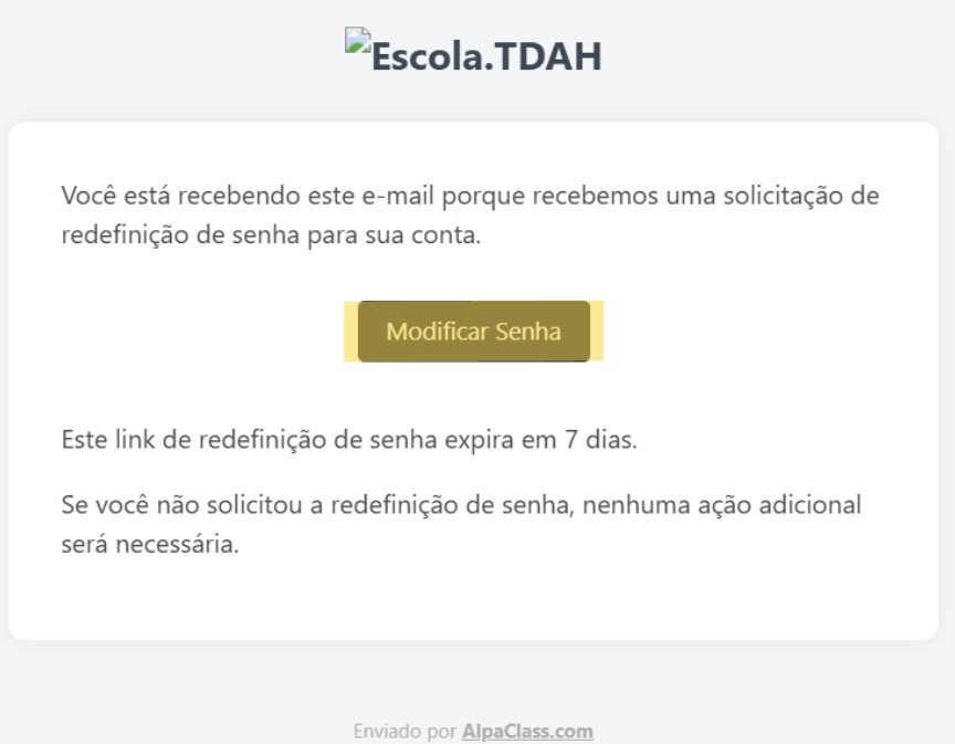 2. Você receberá um e-mail da Escola com o assunto Redefinição de Senha, abra o e-mail e clique em "Modificar Senha":