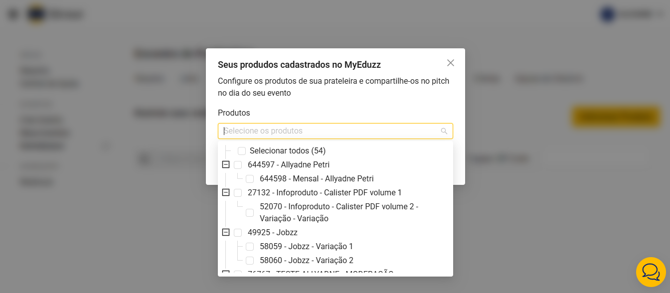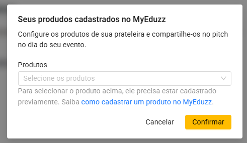 É o processo de conectar os produtos que você já criou no MyEduzz ao seu evento na Blinket. Dessa forma, todas as vendas feitas durante o pitch ficam automaticamente registradas e vinculadas ao evento.