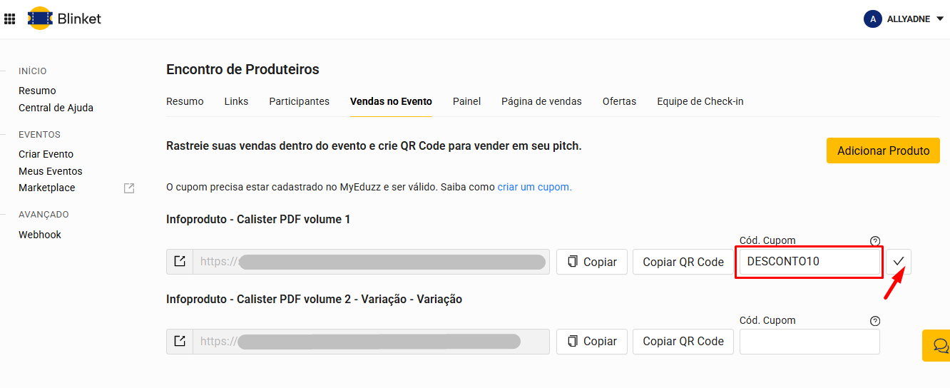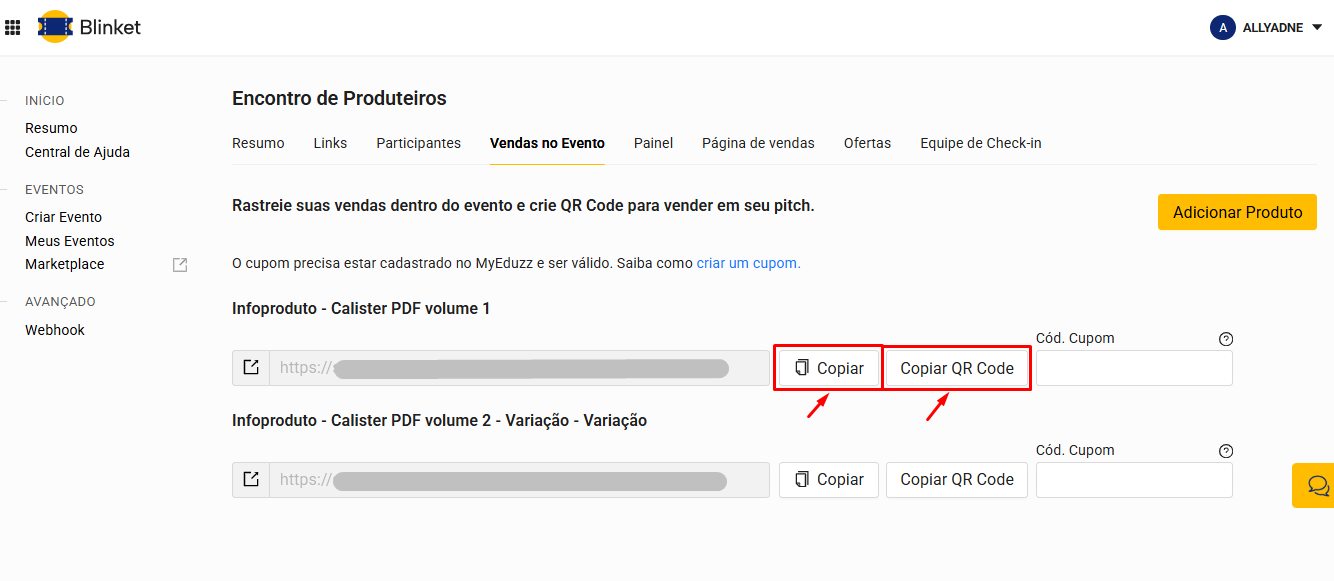 Como vincular produtos do pitch ao evento e gerar QR Code na Blinket