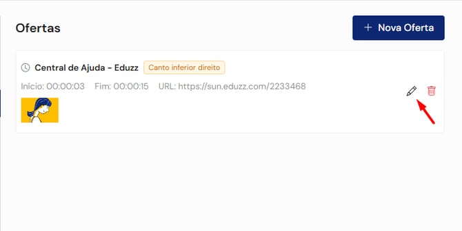 - Depois de cadastrar a oferta, clique no ícone do lápis para editar o oferta criada: