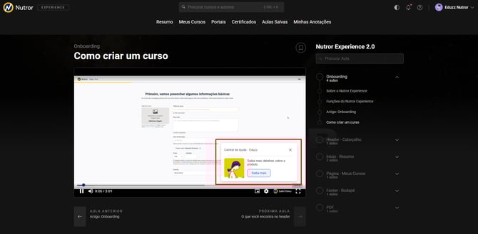 Quando seus alunos acessarem a aula que possui o anúncio cadastrada visualizarão o anúncioe ao clicar no botão Saiba mais serão redirecionados à página do checkout do produto.