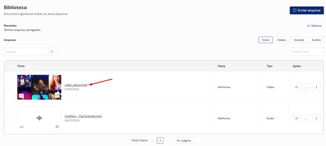 - Acesse sua conta SafeVideo e, no menu principal clique em Biblioteca: