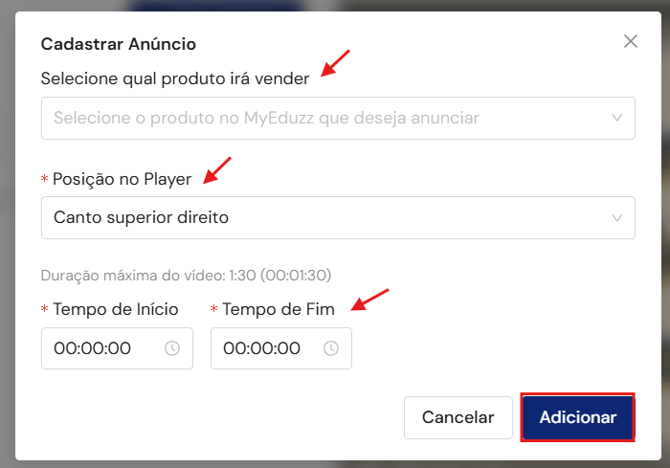 - Defina a minutagem e por quanto tempo o anúncio ficará disponível;