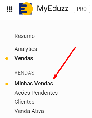 Acesse sua conta e clique no menu "Vendas" > "Minhas Vendas":