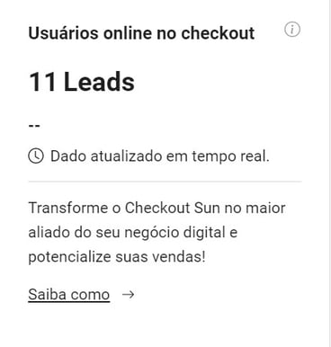 💡 Usuários online no checkout: mostra em tempo real quantas pessoas estão acessando o seu checkout. Ela te dá maior clareza sobre o interesse dos compradores no produto, ajuda em momentos de pitchs de venda, para saber quantas pessoas estão online nos checkouts dos produtos naquele momento. Durante campanhas ou lançamentos, use esta métrica para ajustar a comunicação em tempo real e aproveitar o interesse momentâneo.