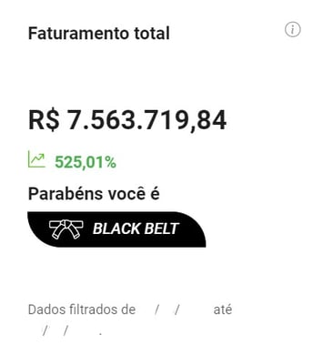 💡 Faturamento total: mostra o valor total bruto faturado no período selecionado. Essa métrica oferece uma visão geral do desempenho financeiro. Lembrando que não é um valor exato, e sim aproximado, desconsiderando qualquer tipo de taxa. Use como referência para mensurar o impacto de promoções ou ações de marketing.