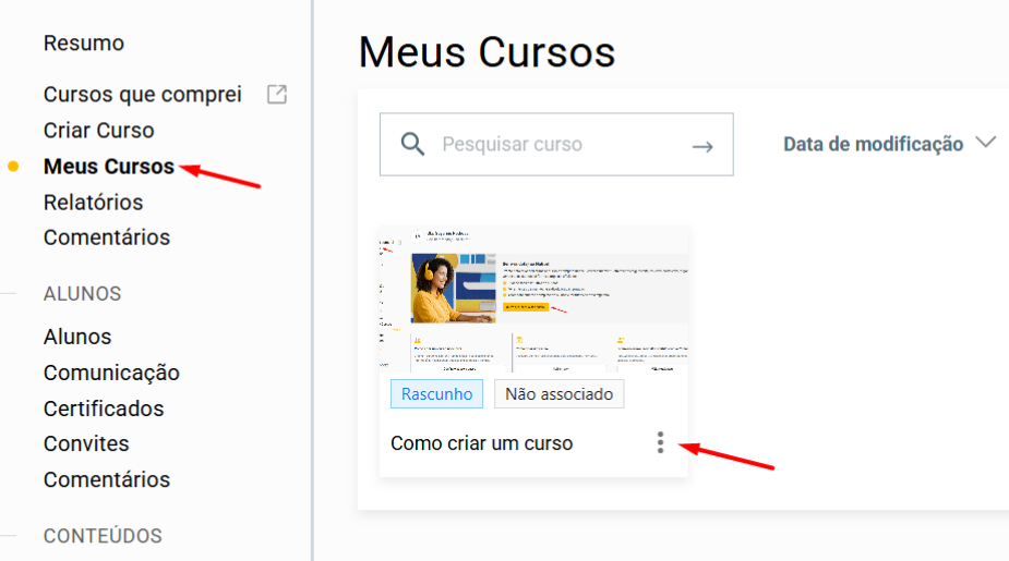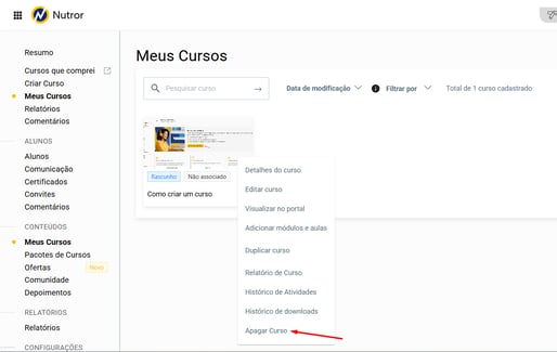 Caso deseje descontinuar algum curso que não pretende mais comercializar e deseja exclui-lo, basta seguir os passos abaixo: