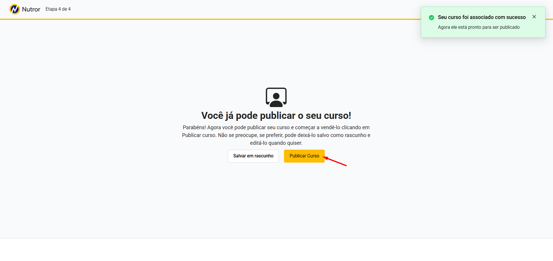 Obs: Se você já criou o produto em Rascunho no MyEduzz, basta selecioná-lo para associar o curso criado no Nutror ao produto no MyEduzz.