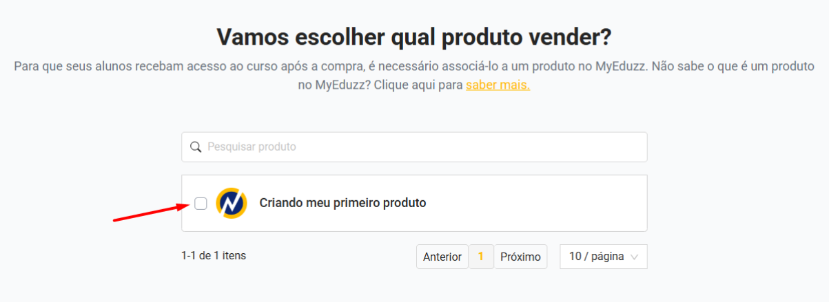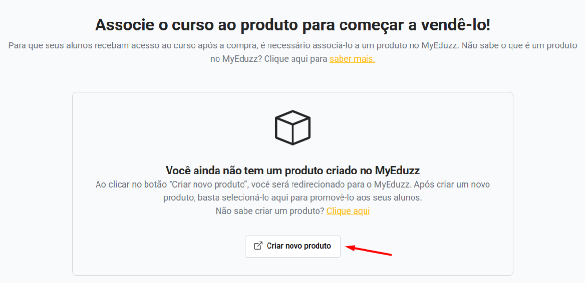 Para que seus alunos recebam acesso ao curso após a compra, é necessário associá-lo a um produto no MyEduzz.