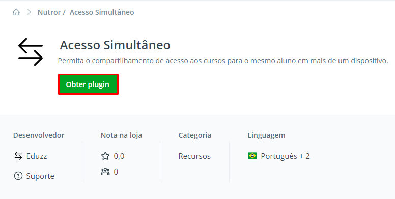 Clique no plugin "Acesso Simultâneo" e selecione "Obter plugin":