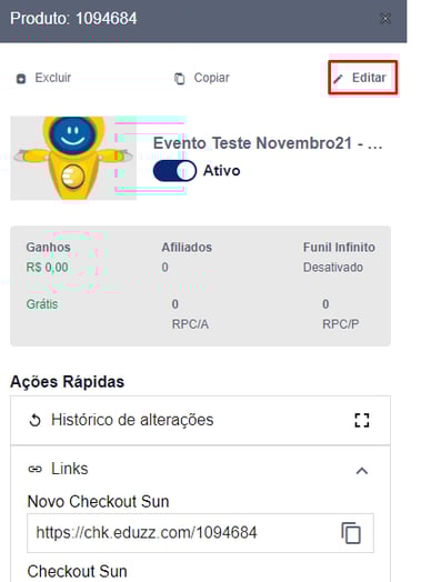 Obs: Caso não tenha nenhum infoproduto, clique aqui para saber como criar