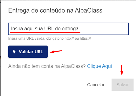Insira sua URL de entrega no campo indicado, clique em "Validar URL" e em "Salvar":