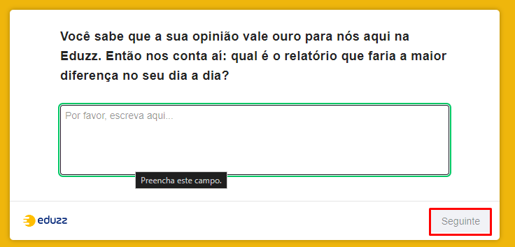 Nos dê a sua ideia de relatório e depois clique em "Seguinte" para enviar: