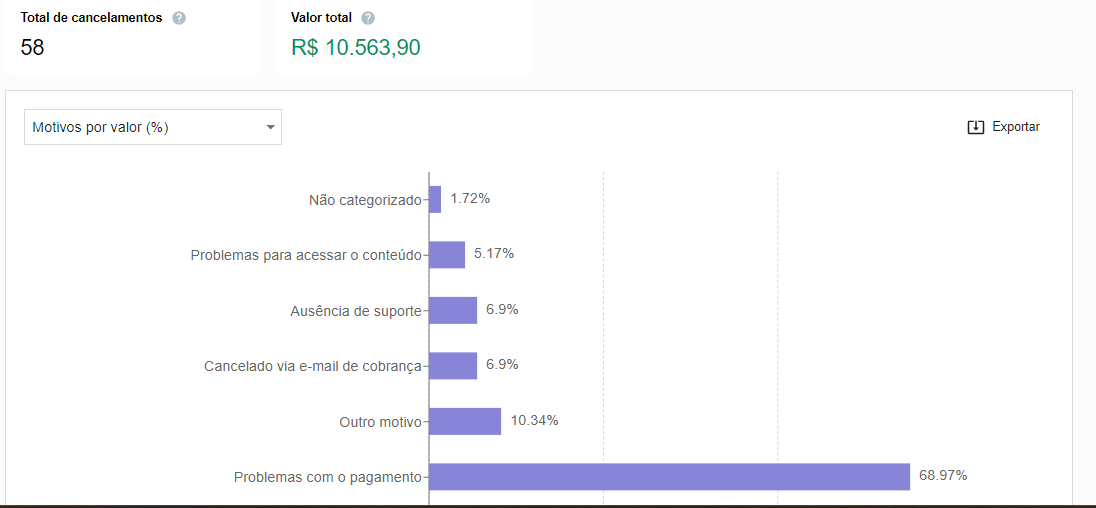 Acesse os dados referentes aos reembolsos realizados como o motivo do reembolso: