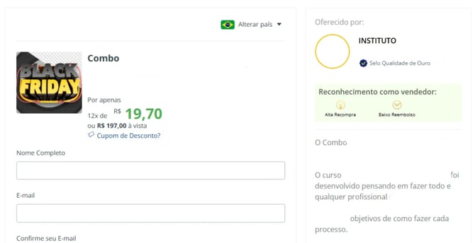 Selos ativos ficam visíveis no checkout do produtor e podem ser destacados junto com a nota média das avaliações, transmitindo mais confiança às vendas. A exibição destes reconhecimentos é opcional.